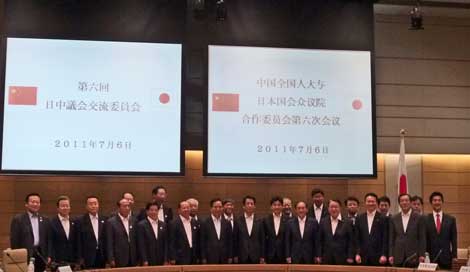 2011年7月6日、中国の全国人民代表大会代表ら訪問団30人(団長=李建国・全人代常務委員会副委員長)と日本の国会議員(団長=川端達夫・衆院議院運営委員長)が意見を交わしました。